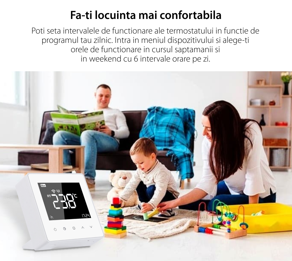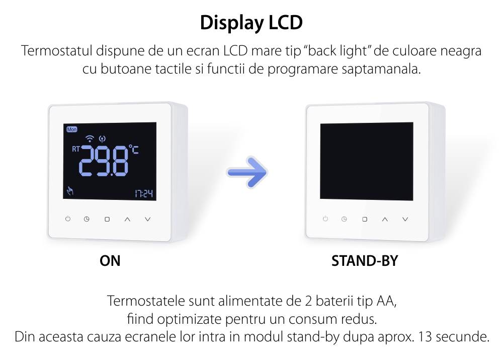Specificatii Termostat Wi-Fi Luxion TP618RFW receiver centrala
