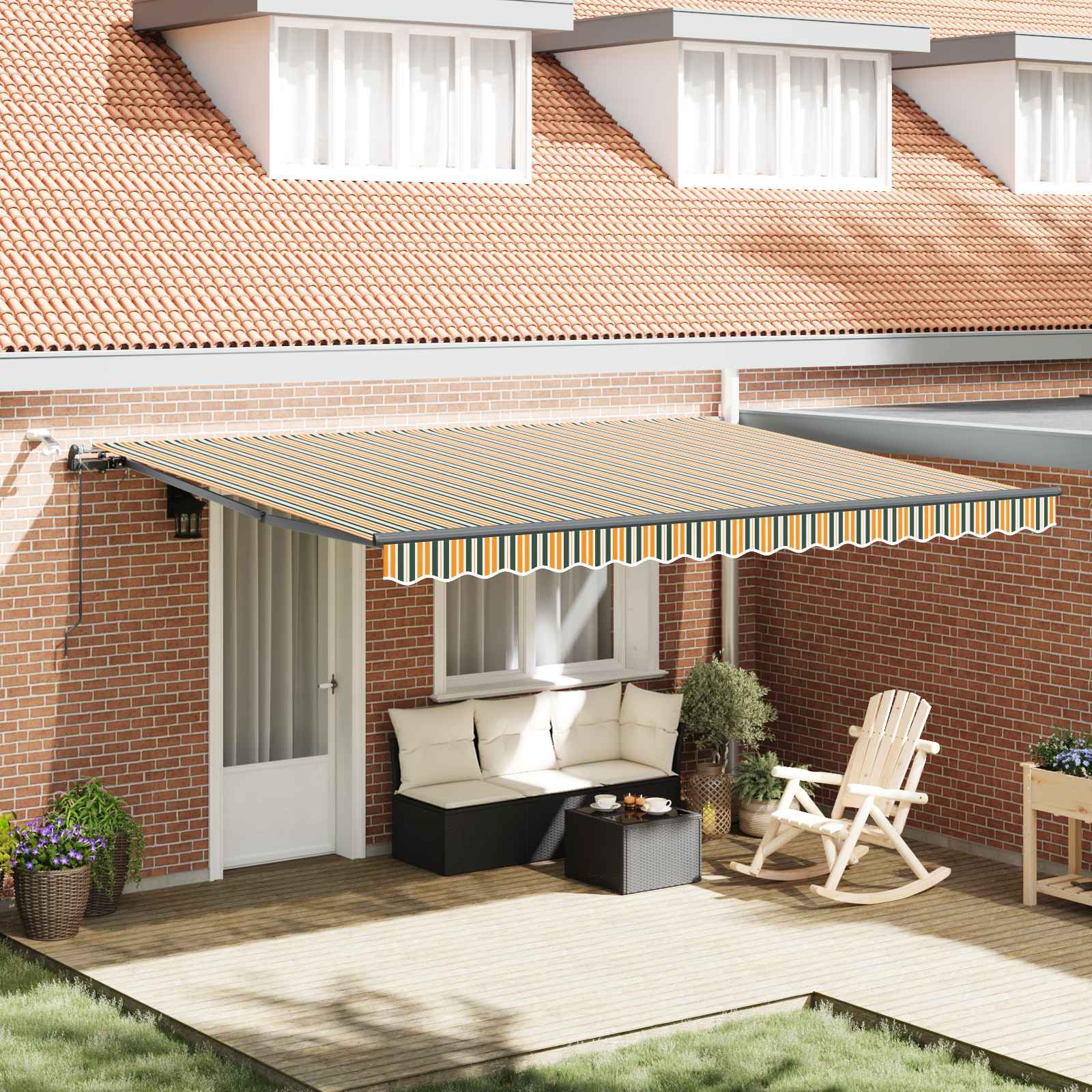Materialul pentru marchiză e creat să ofere o umbră stilată și practică pentru toate tipurile de spații exterioare. Forma sa dreptunghiulară e ideală pentru balcoane, grădini și terase cu un design modern, cu linii curate. E locul perfect pentru a te relaxa sau a organiza întâlniri pe timp de vară, îmbunătățindu-ți atmosfera de exterior. Se integrează bine în orașe sau la țară, fiind perfectă pentru zilele călduroase.