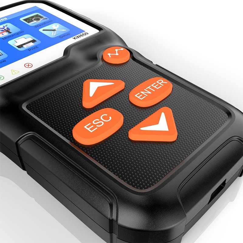 Testerul baterie auto KONNWEI KW650 este un instrument practic si precis pentru diagnostic rapid: verifici starea bateriei, testul de pornire si incarcarea alternatorului. Ecranul color de 2,4" afiseaza rezultate clare, inclusiv grafice, astfel incat sa iei decizii rapide cand bateria da semne de oboseala.