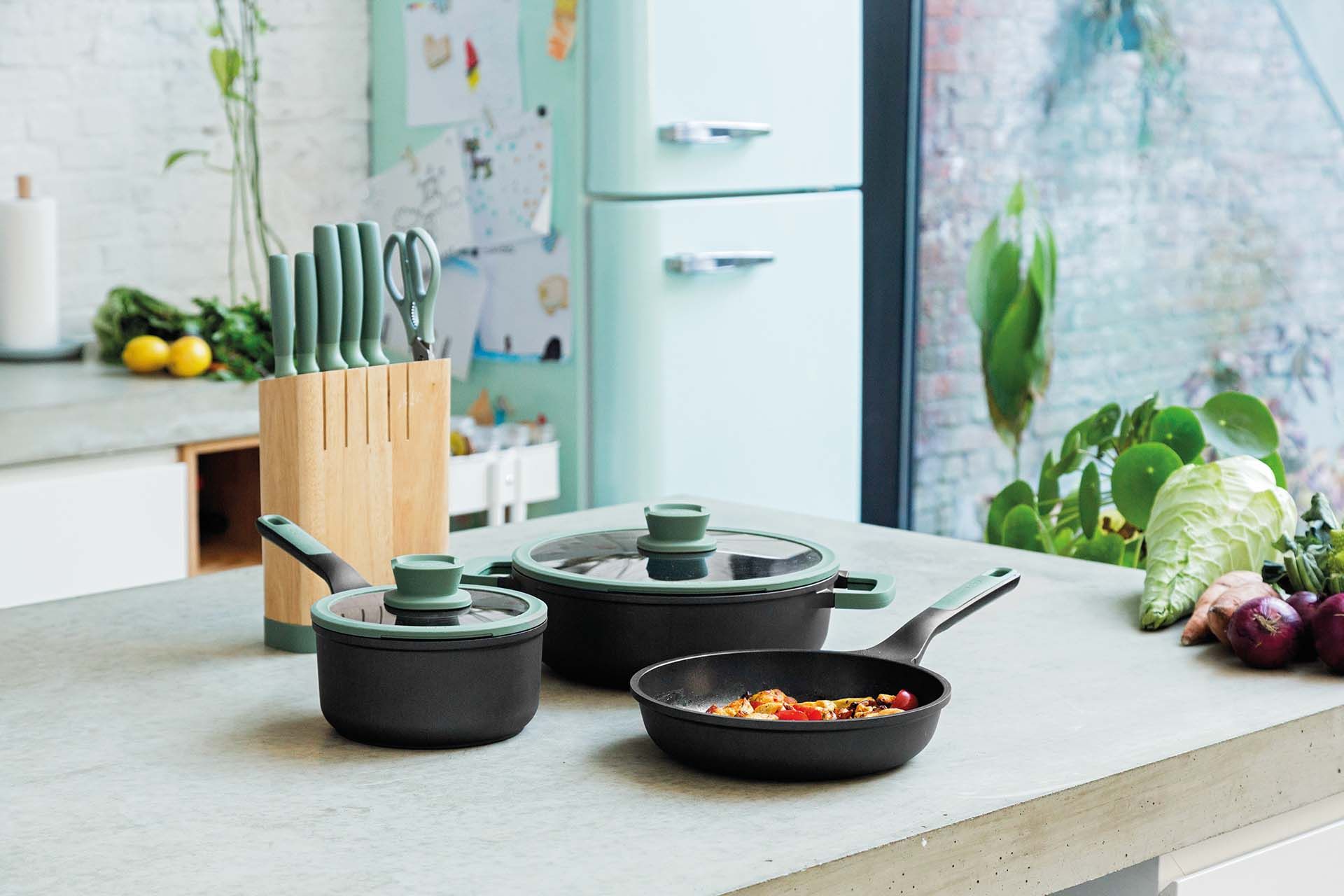 Tigaie BergHOFF Forest, 24 cm, 2L, înveliș antiaderent, Aluminiu, Negru/Verde HighLine Cooking