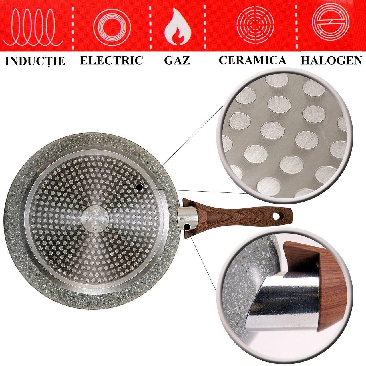 - Potrivita pentru TOATE SURSELE de incalzire – inductie electrica, flacara gaz, ceramica, halogen.