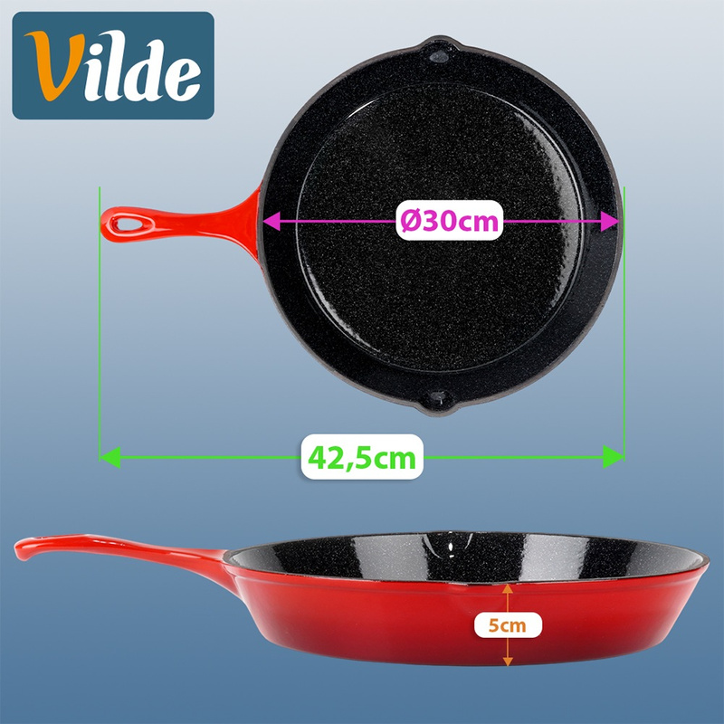 Descriere Tigaie fontă emailată 30 cm roșie,