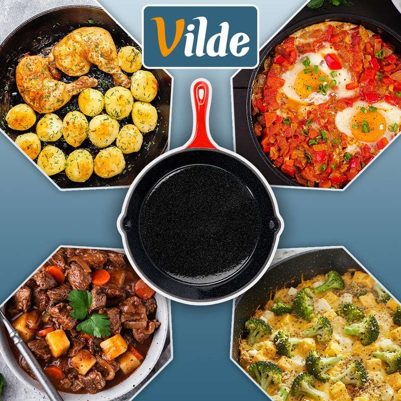 Descoperă o tigaie din fontă emailată de 30 cm, perfectă pentru gătit zilnic: prăjire, sotare și preparate la cuptor. Fonta distribuie căldura uniform și o păstrează mai mult timp, iar stratul de email ajută la curățare ușoară. În plus, setul include o husă din silicon pentru mâner, ca să o manevrezi confortabil și în siguranță.