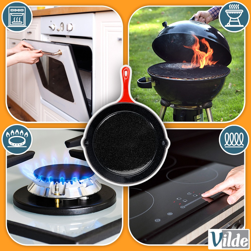 Compatibilă cu plite pe gaz, electric, ceramic și inducție. Poate fi folosită și la cuptor, pe grătar sau pe foc deschis – ideală pentru carne, legume, cartofi și preparate rumenite.