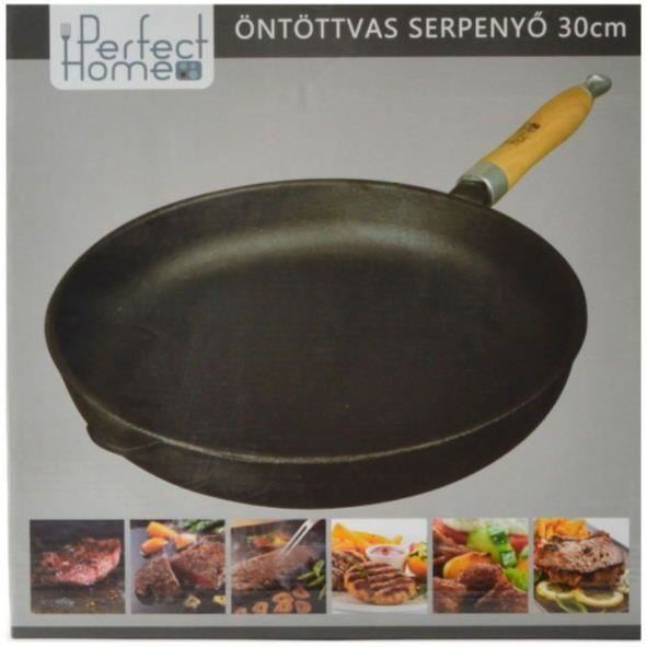 Tigaie fonta cu maner lemn, 30 cm, Perfect Home