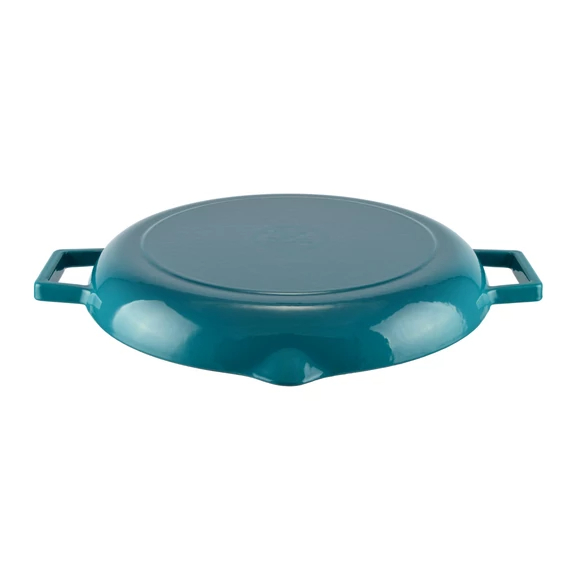 Tigaie grill din fontă emailată 31 cm, cu cioc, turcoaz Handy KitchenServ