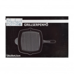 Tigaie grill din fontă Perfect Home, 25,5 cm, pretratată cu ulei vegetal
