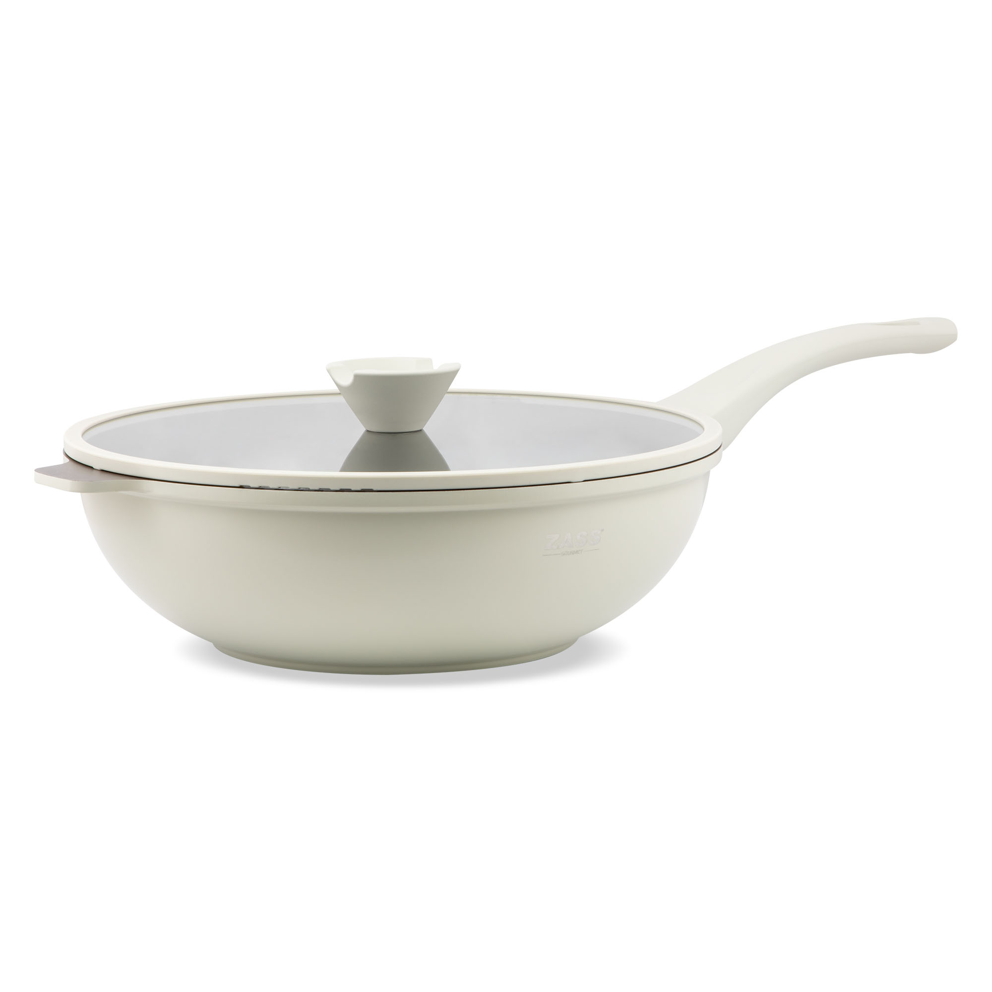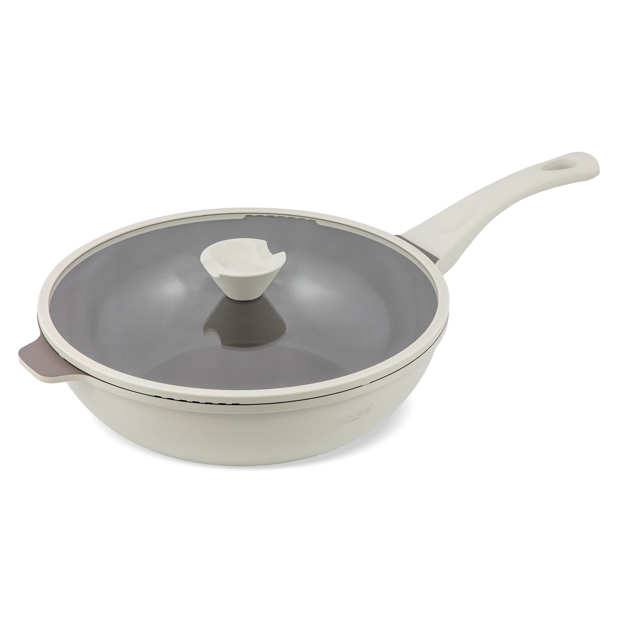 Tigaie tip wok din aluminiu turnat sub presiune si acoperire ceramica cu capac din sticla - 30 cm ZG-ACS 08 Terracotta ProDesign DailyAppliances