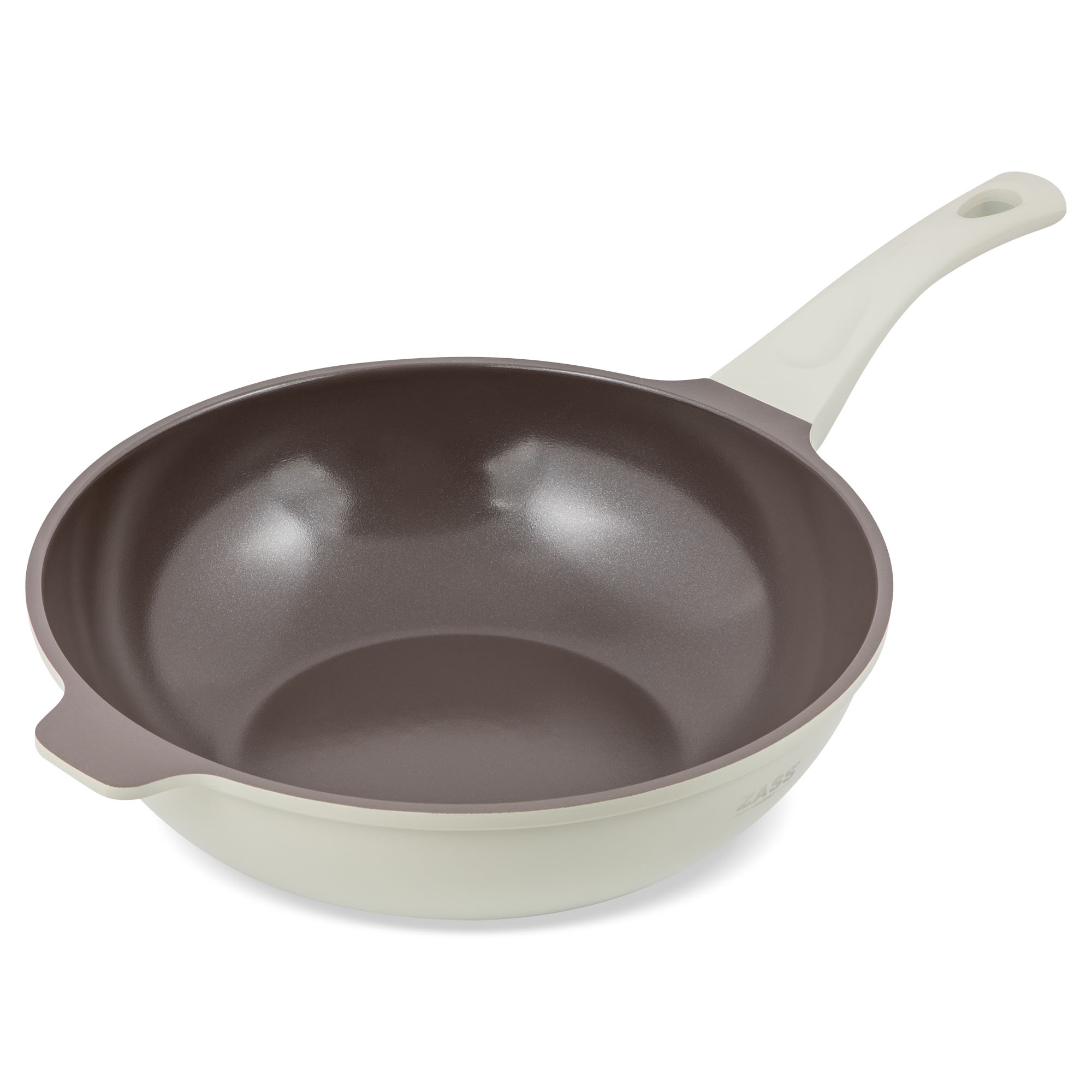Gătește mai ușor și mai plăcut cu această tigaie wok 30 cm din aluminiu turnat sub presiune, concepută pentru preparate rapide, uniforme și gustoase. Datorită acoperirii ceramice antiaderente, ingredientele se lipesc mai greu, iar curățarea devine mult mai simplă. Capacul din sticlă termorezistentă ajută la păstrarea temperaturii și a aromelor, fiind ideal pentru legume, carne, paste sau rețete asiatice.
