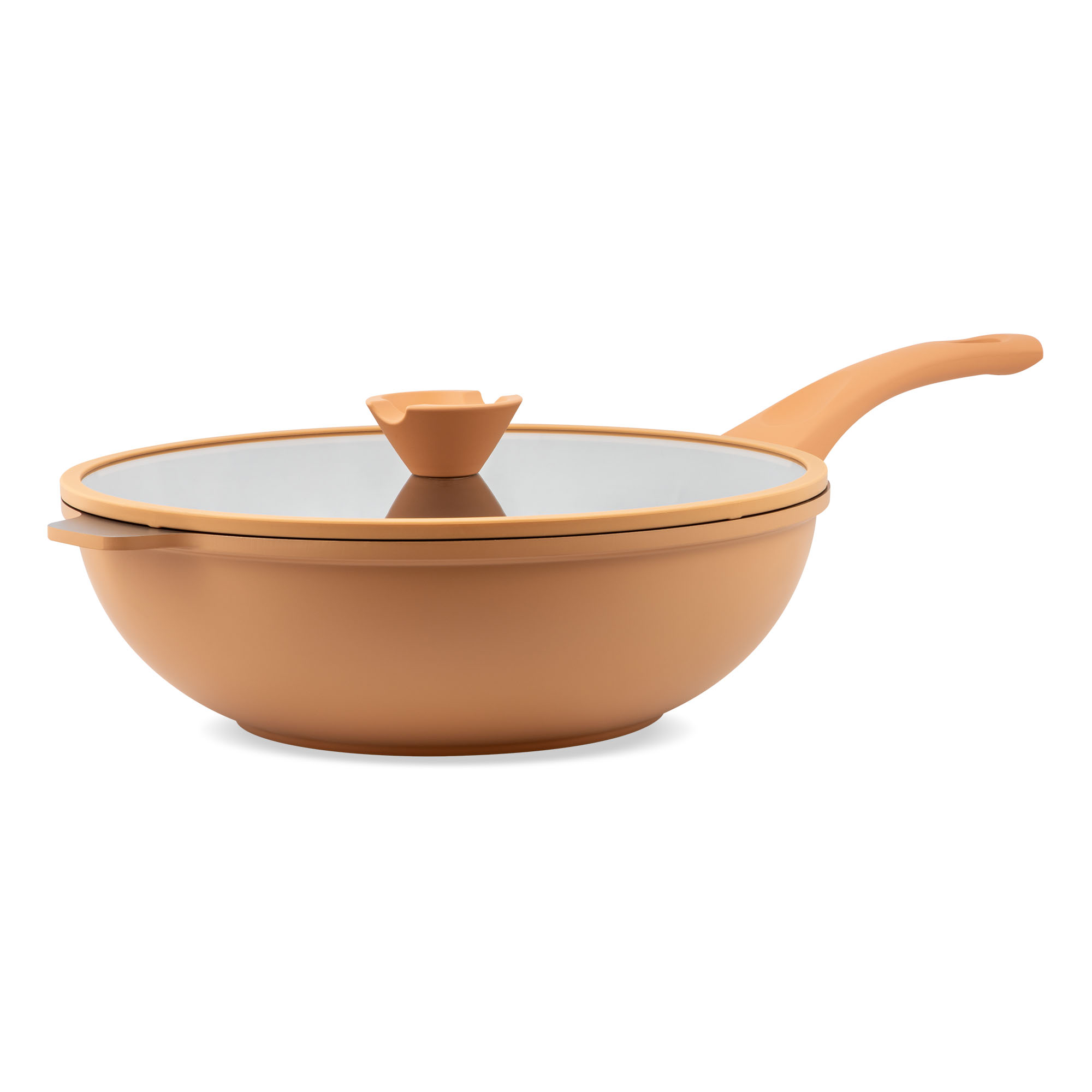 Tigaie wok din aluminiu turnat cu acoperire ceramică și capac, 30 cm, crem