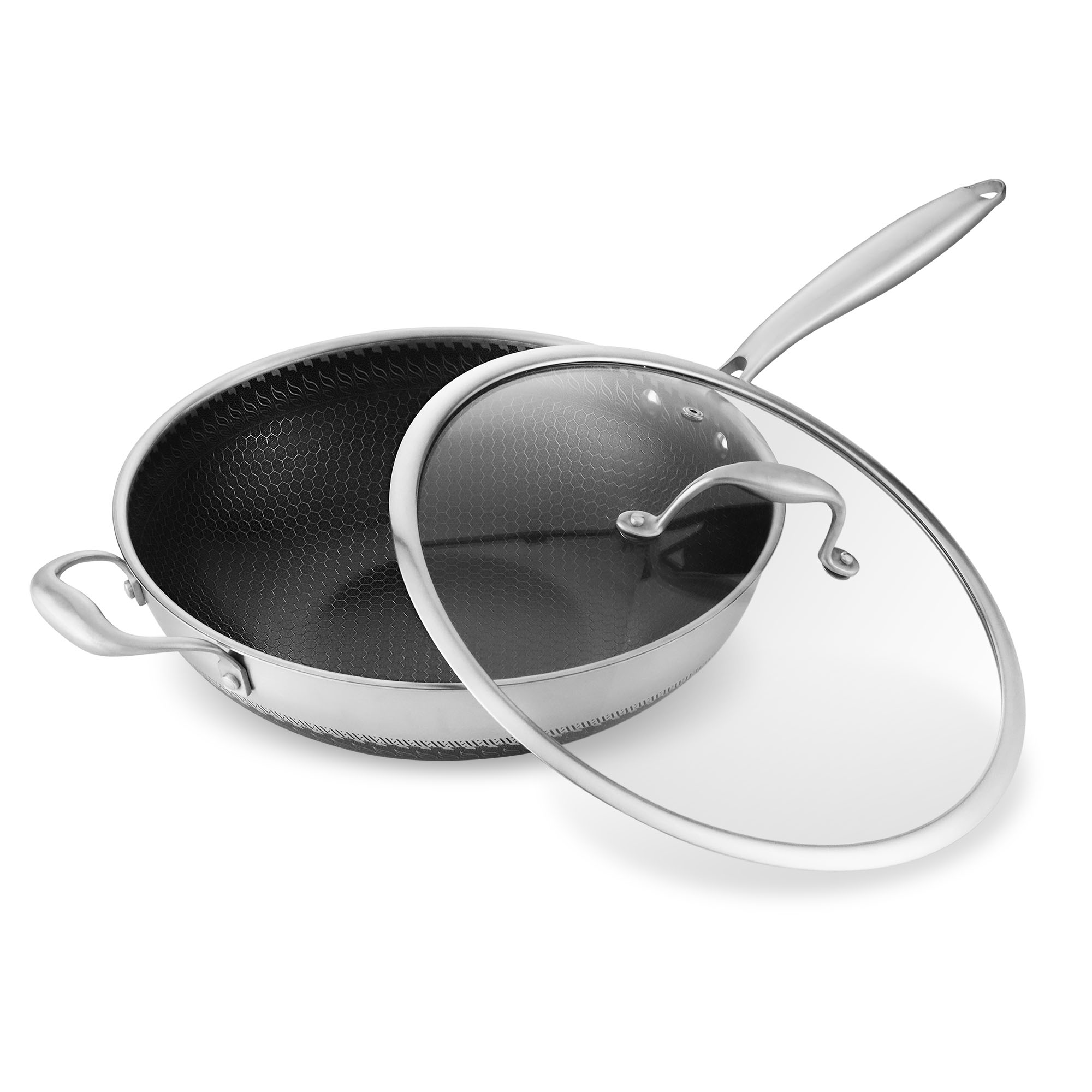 Tigaie wok profesională din inox, ceramică tip fagure, cu capac 30 cm Zass