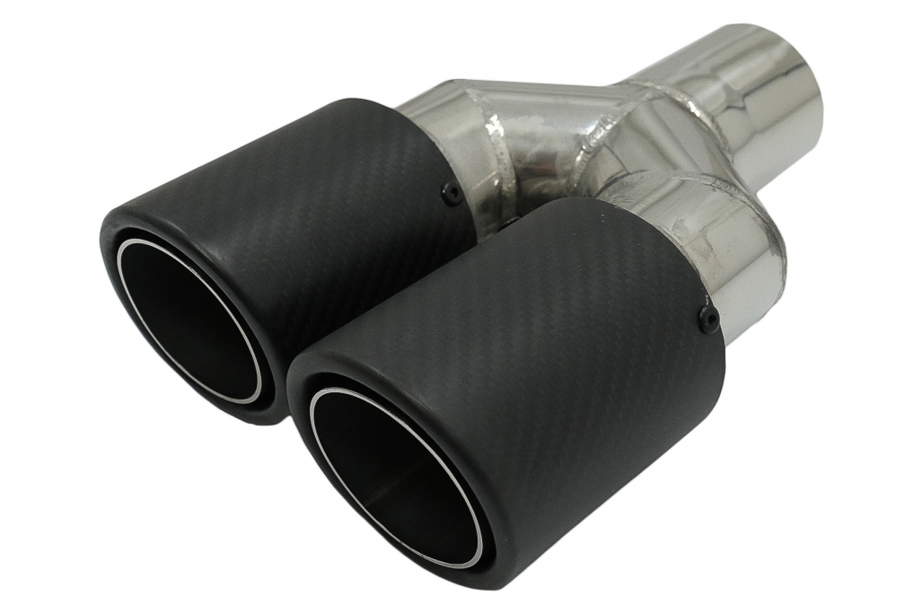 Ornamentul este fabricat din otel inoxidabil 304 si fibra de carbon de cea mai buna calitate. Dimensiuni: Orificiu de admisie: 5.8 cm Iesire: 16.5 cm Lungime: 25.5 cm Forma: Y Va rugam sa verificati sistemul de evacuare al masinii dvs. si sa il comparati cu dimensiunea produsului nostru.