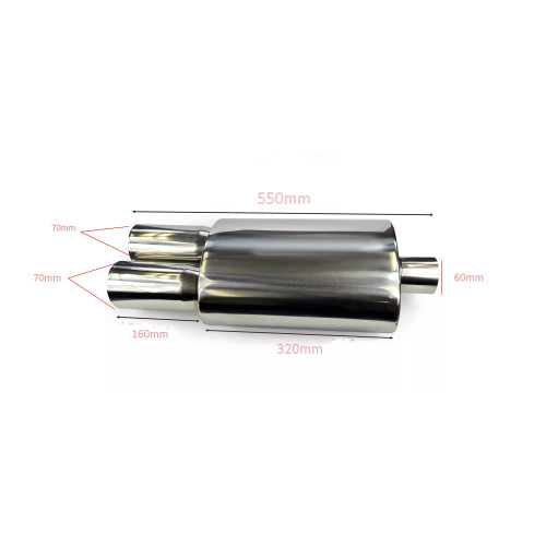 Toba sport inox dubla, diametru intrare 60 mm, lungime totala 550 mm, corp 320 mm Cod: 801212-7676P Automotive TrustedCars