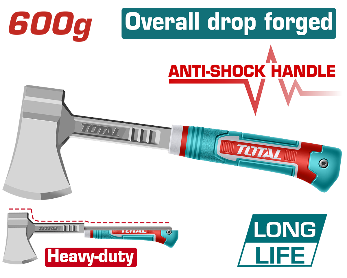 Alege această toporișcă TOTAL 600 g pentru lucrări de zi cu zi în gospodărie, atelier sau pe șantier. Este o toporișcă cu mâner anti-șoc, concepută pentru prindere sigură, confort sporit și rezistență ridicată în utilizare frecventă. Capul este forjat integral și tratat termic, ceea ce oferă durabilitate excelentă și o viață îndelungată produsului.