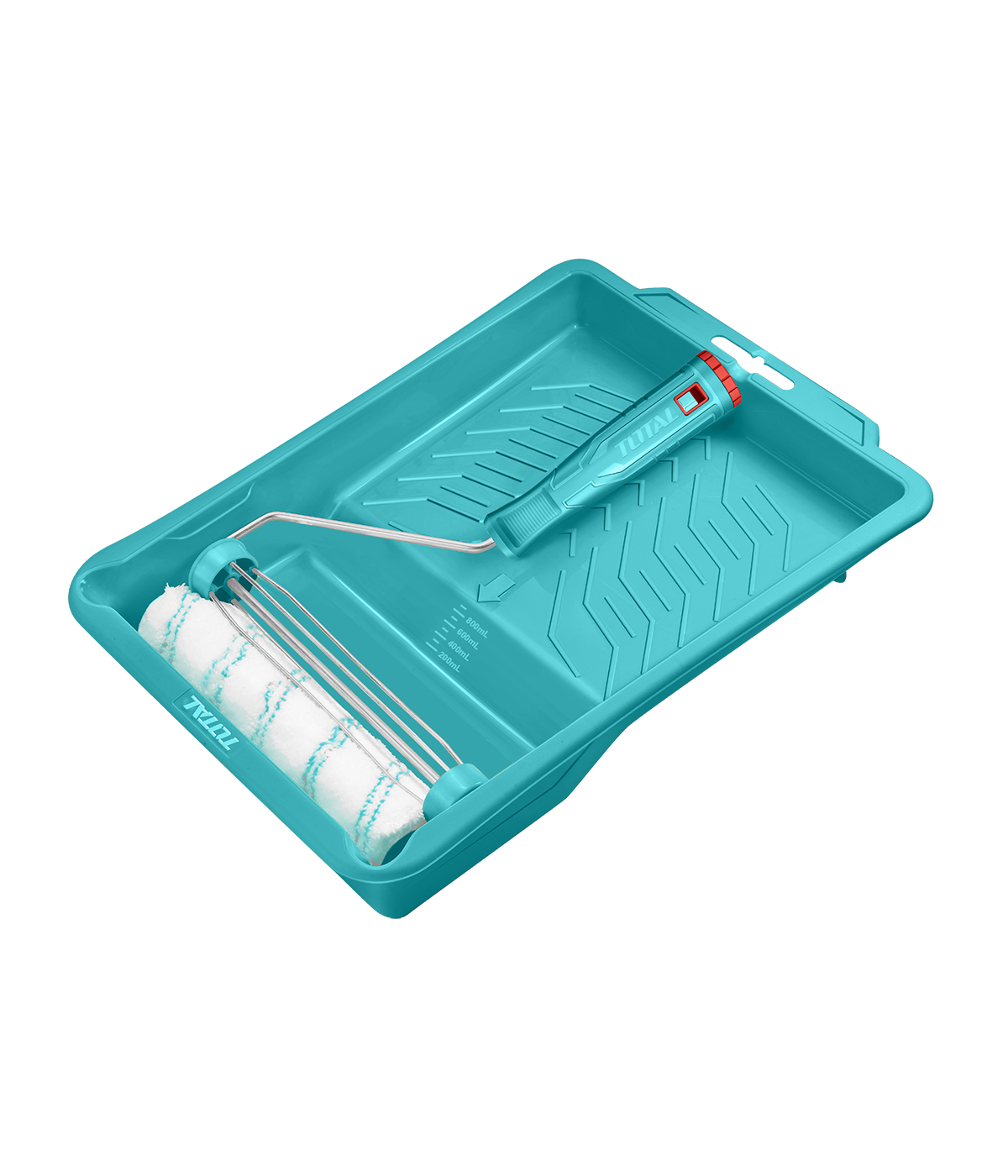 Set de vopsit pentru pereti interiori, cu rola din microfibra de 230 mm si grosime fibra 12 mm. Setul contine tava, suport, rola si tije auxiliare.