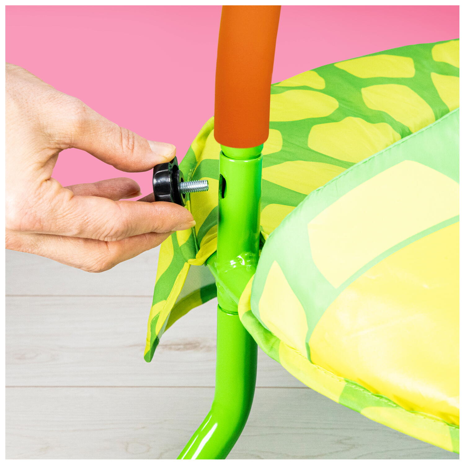 Conceputa special pentru cei mici, aceasta trambulina cu maner este usor de folosit si de depozitat. Picioarele din cauciuc ajuta la o aderenta mai buna, iar cadrul tubular din otel cu finisaje fine ofera rezistenta la utilizare. Manerul si picioarele sunt detasabile, astfel incat produsul se poate demonta rapid si pastra cu usurinta in spatii mici.