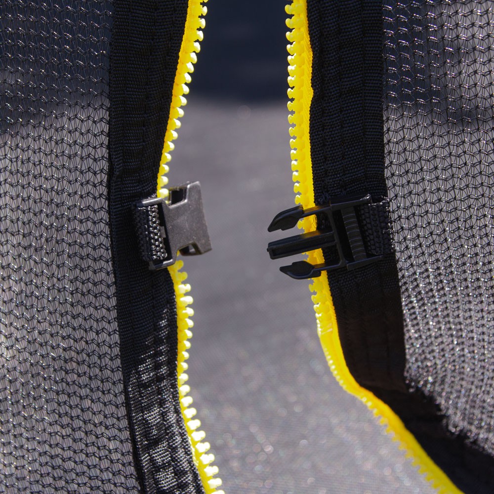 Restul trambulinei este de asemena sigura. Arcurile care tin suprafata de sarit sunt ascunse sub o protectie de arcuri, in timp ce stalpii de plasa au bureti de spuma care se pun pe ei. Scara are trepte antiderapante care va permit sa urcati in siguranta pe trambulina, in timp ce intrarea este asigurata nu numai cu fermoar, ci si cu catarame. Cu diametrul sau de 183 cm, aceasta trambulina se va potrivi perfect in gradina dvs. Daca doriti sa distrati atunci Trambulina Set inSPORTline Flea 183 cm este alegerea perfecta!