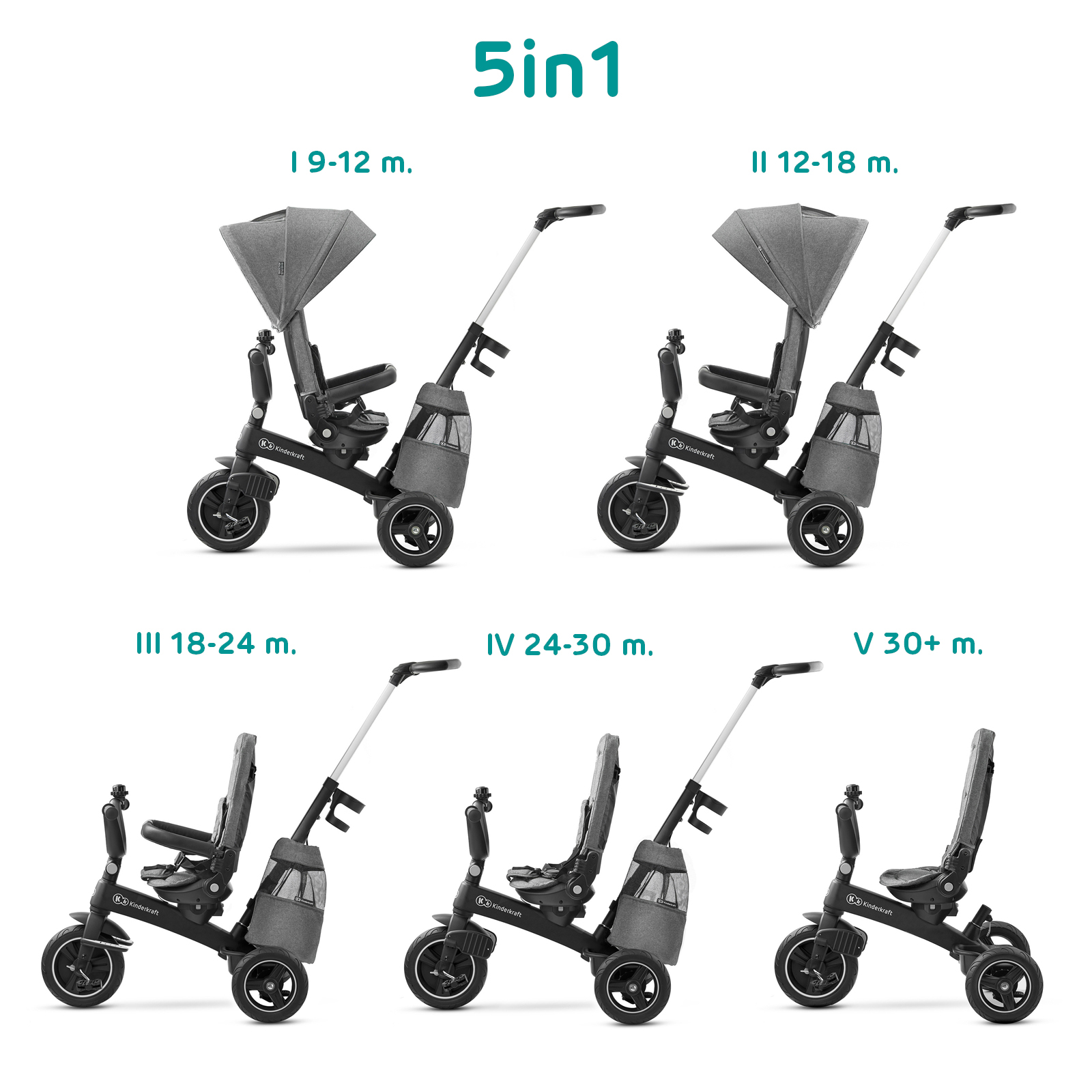 Tricicleta Kinderkraft EASYTWIST 5 in 1 cu scaun rotativ, Platinum Grey