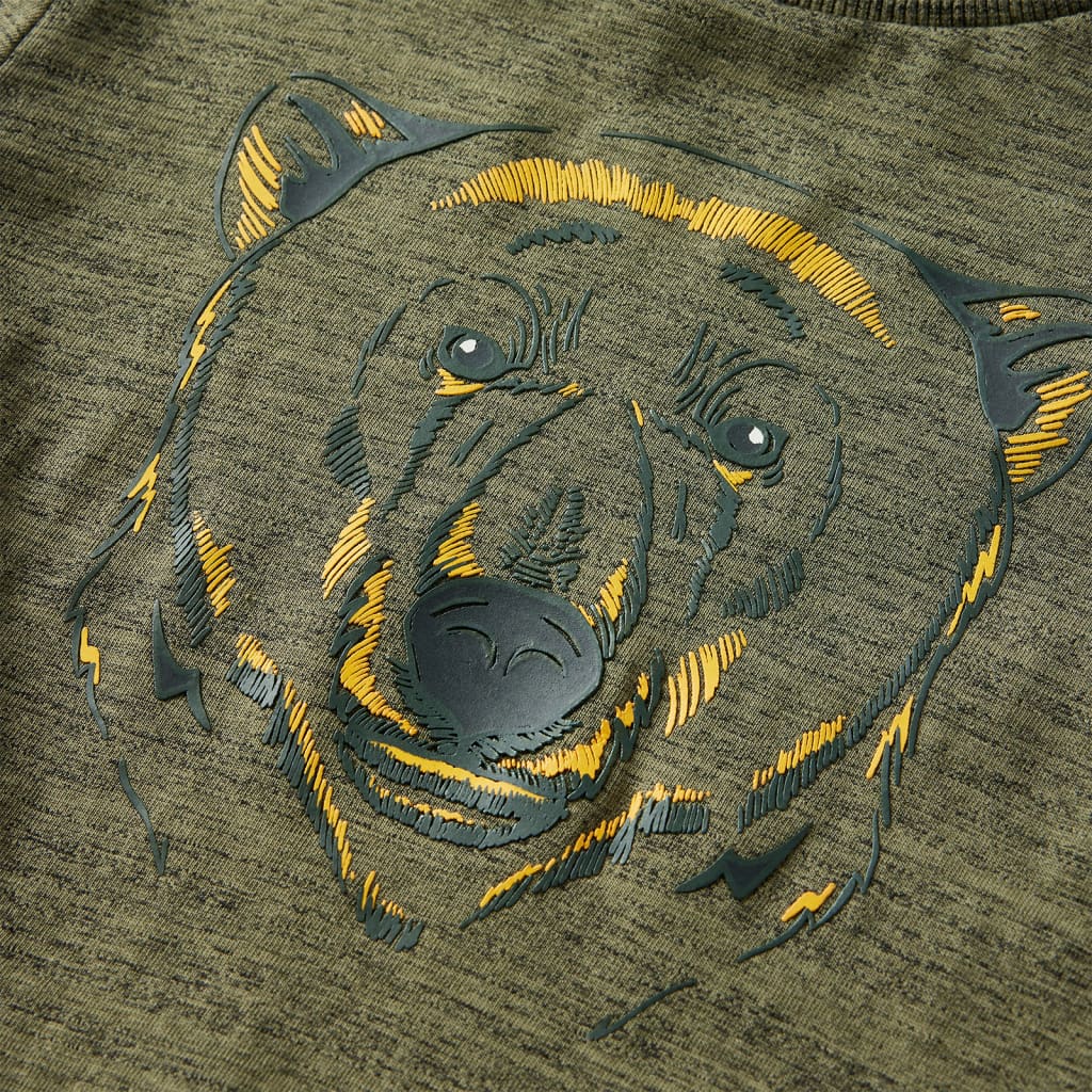Acest tricou pentru copii are mâneci lungi, decolteu rotund și model drept. Acest tricou kaki melange prezintă un urs mare. Tricoul pentru copii cu mânecă lungă este realizat din bumbac 100% pentru o atingere moale și confortabilă.