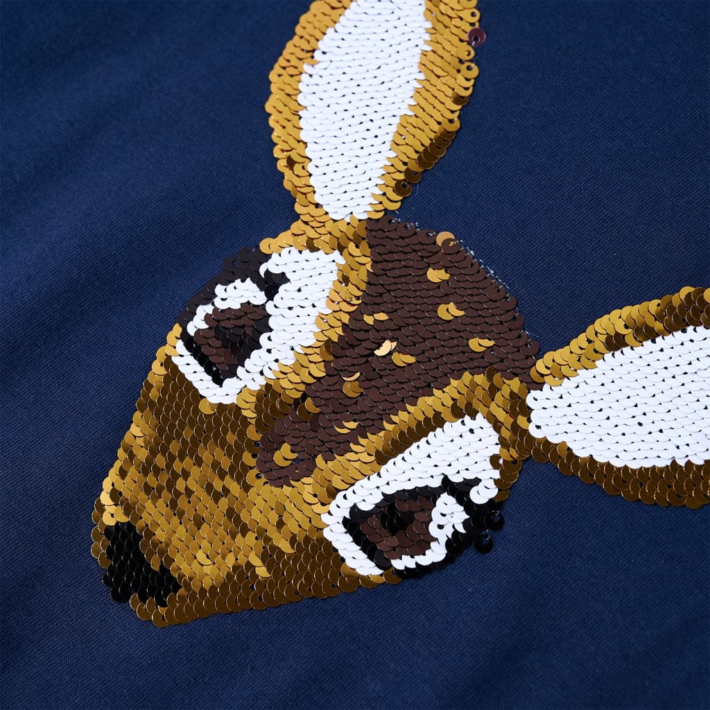 Acest tricou pentru copii are mâneci lungi, decolteu rotund și croială dreaptă. Motivul cu o căprioară brodată cu paiete reversibile aduce o notă de magie în partea din față. Tricoul pentru copii cu mânecă lungă este confecționat din material moale, cu 95% bumbac si 5% elastan, pentru un plus de confort și respirabilitate.