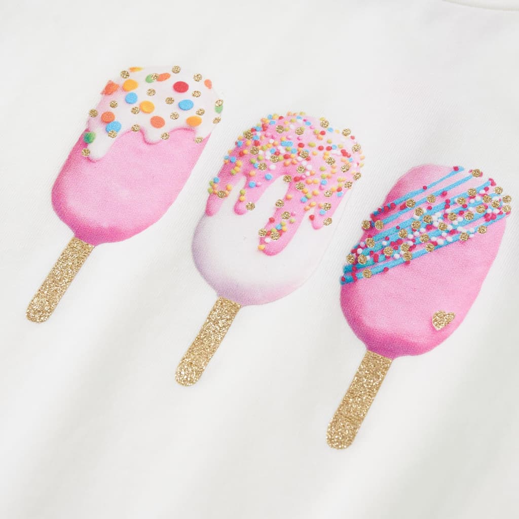 Acest tricou pentru copii are mâneci scurte, decolteu rotund și croială dreaptă. Acest tricou pentru copii prezintă înghețate. Tricoul pentru copii cu mânecă scurtă este realizat din 95% bumbac și 5% elastan, pentru o senzație moale și confortabilă la atingere.