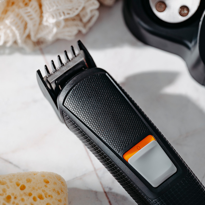 - Alege capatul potrivit (tuns, barba, precizie, nas/urechi sau ras) si fixeaza-l pe aparat.