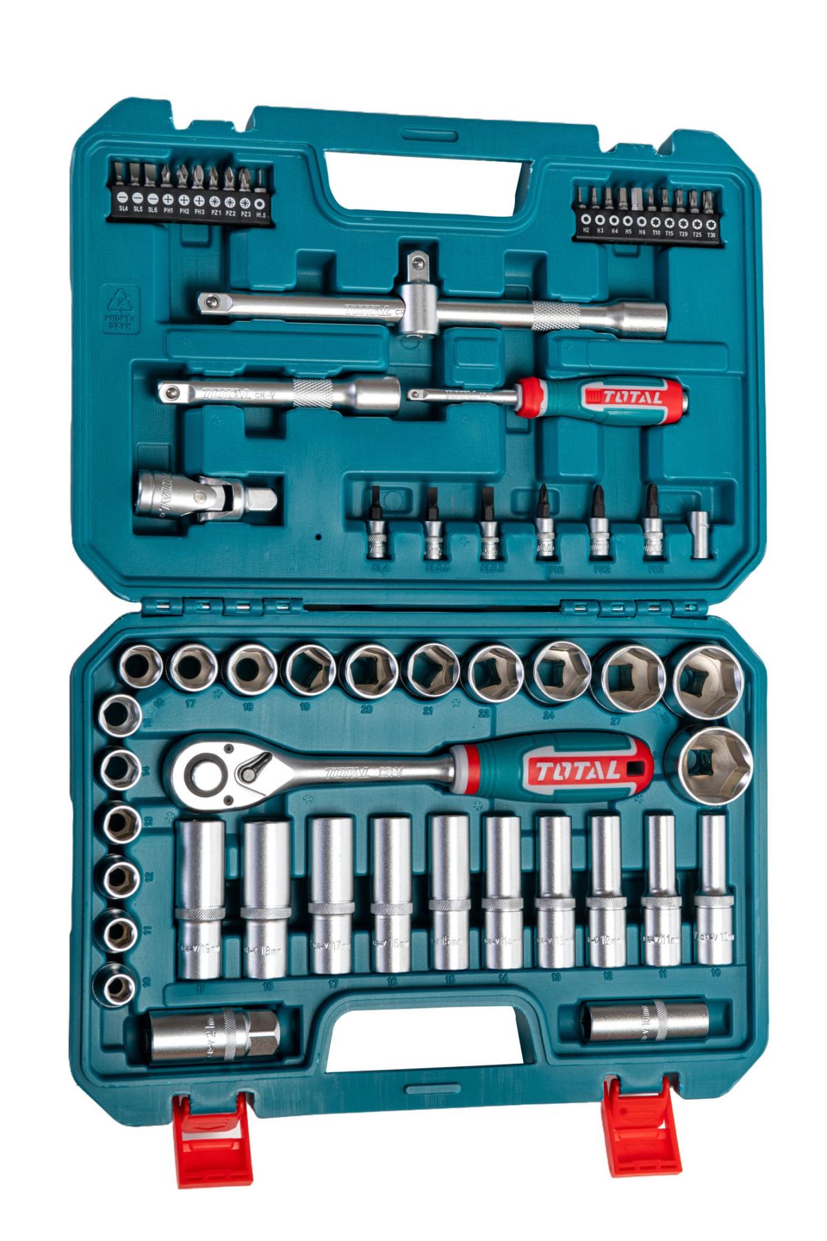 Trusă chei tubulare Total 1/2 cu clichet 72T, 62 piese din Cr-V