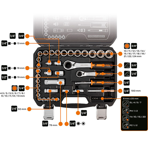 Trusa de scule 1/4”-3/8”- 46 piese NEO TOOLS 10-019 HardWork ToolsRange