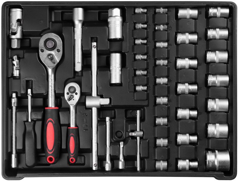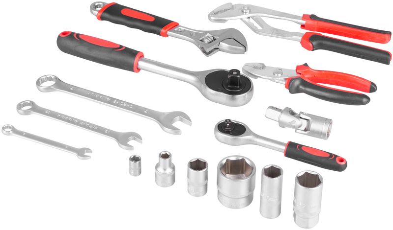 - Include tubulare, chei, biți și șurubelnițe pentru majoritatea aplicațiilor uzuale