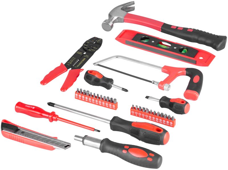- Clești: tăietor 150 mm, combinat 150 mm, reglabil 230 mm, pentru siguranțe 150 mm