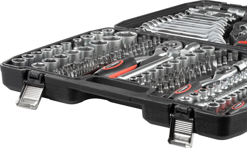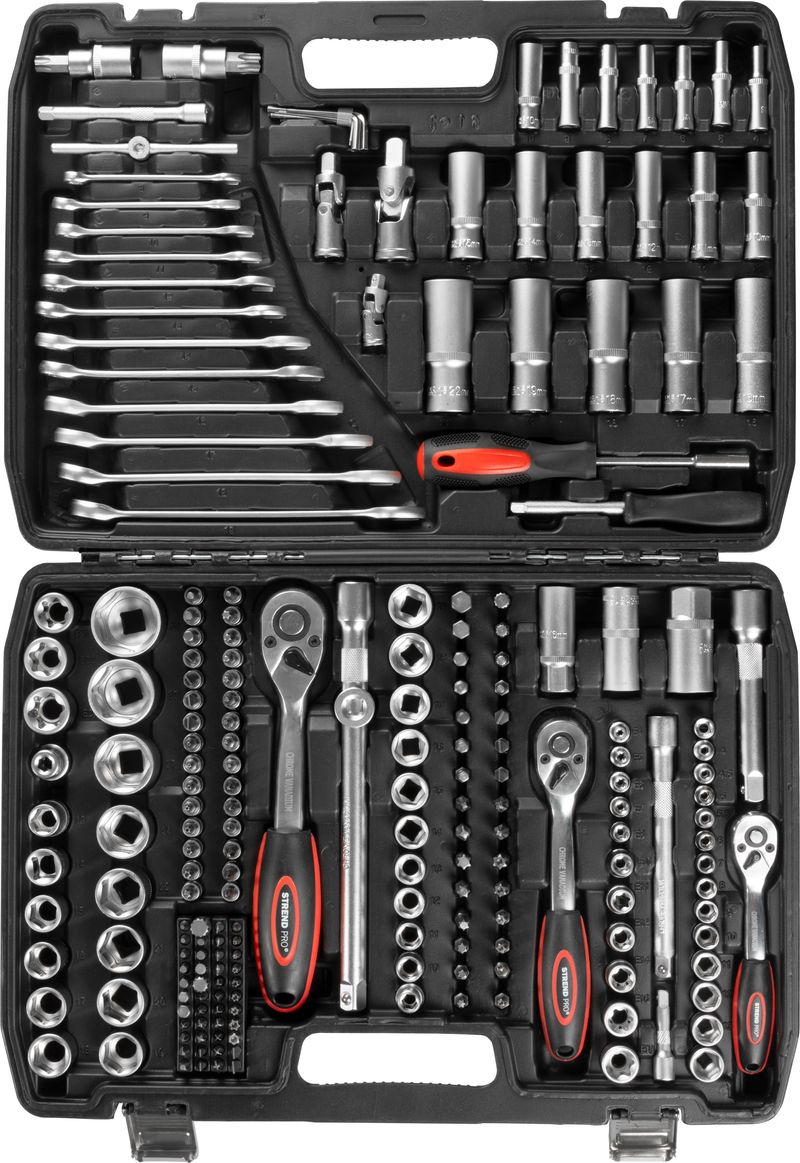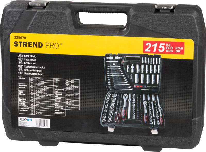 Trusă de scule Strend Pro S221, 215 piese, în valiză, 1/2 + 1/4 + 3/8