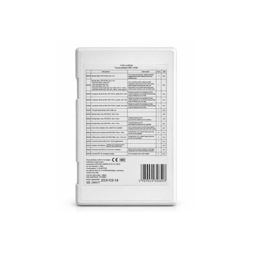 Trusă medicală auto de prim ajutor DIN13164, cutie plastic albă rigidă