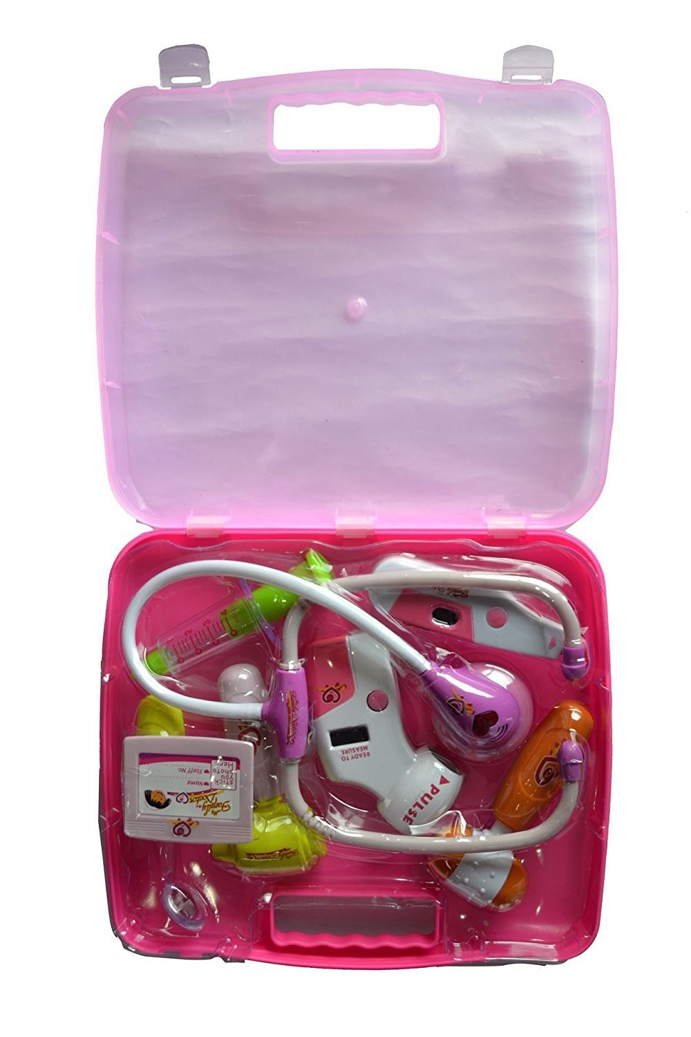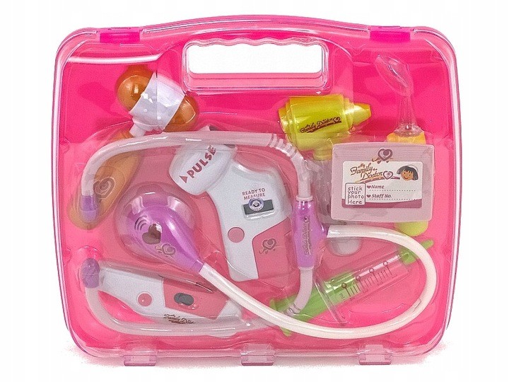 Trusa medicala pentru copii, 8 instrumente doctor, efecte luminoase si sonore, valiza depozitare, roz