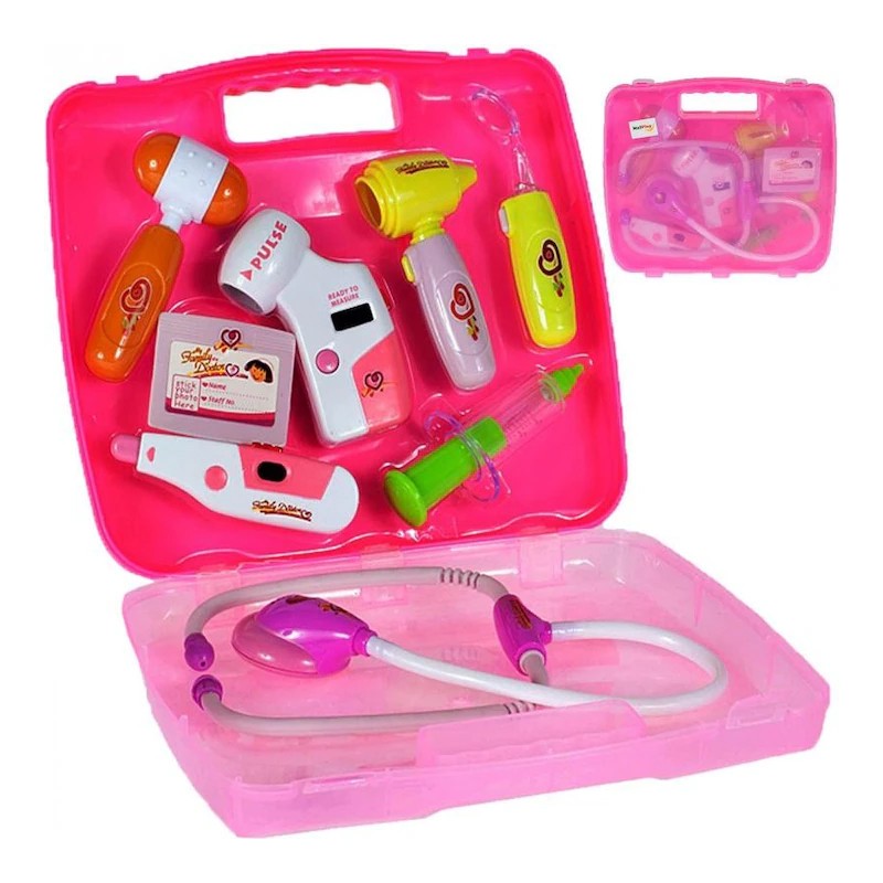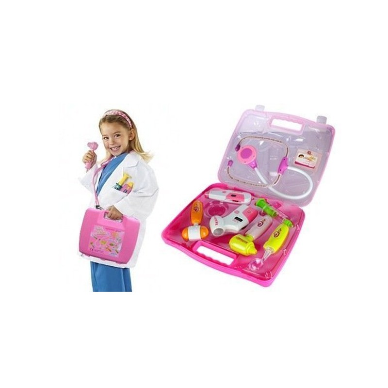 Trusa medicala pentru copii, 8 instrumente doctor, efecte luminoase si sonore, valiza depozitare, roz MultiMark GlobalProd