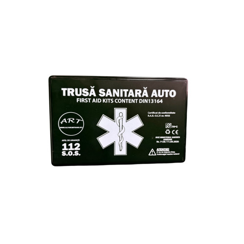 - SC Alfa Rom Trans declara si garanteaza pe propria raspundere ca produsul Trusa Sanitara Auto Marca ART nu pune in pericol viata, sanatatea sau securitatea muncii, nu produce un impact negativ asupra mediului si respecta integral documentul normativ de referinta DIN 13164.