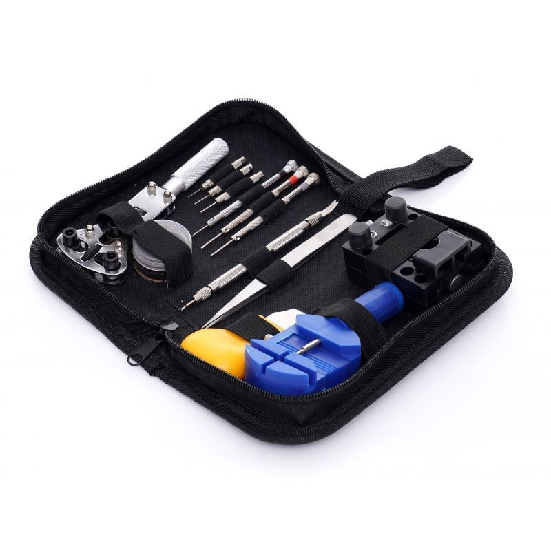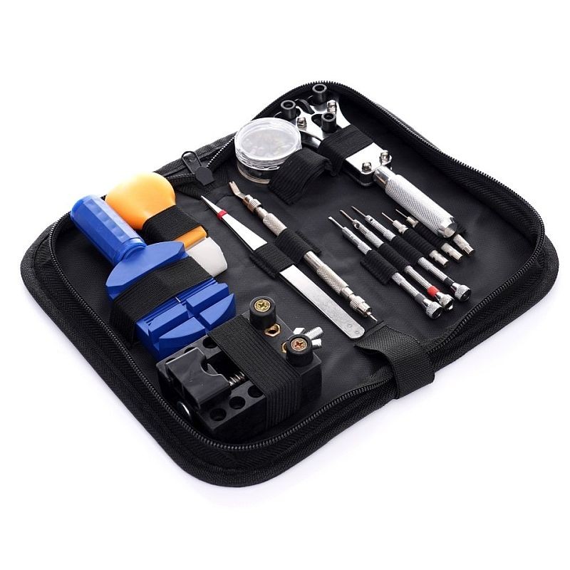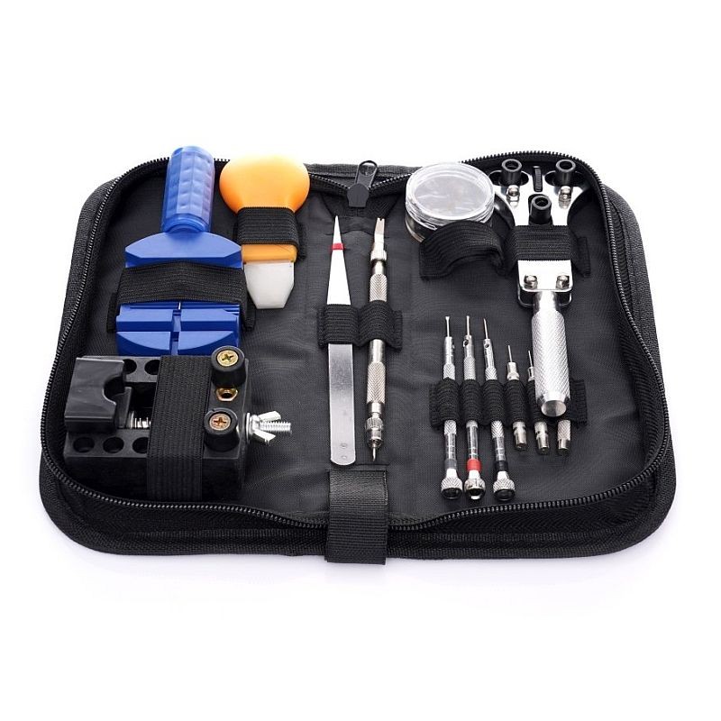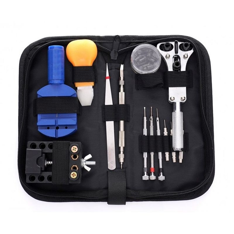 Trusă pentru reparat ceasuri, 13 piese, cu husă cu fermoar și unelte complete