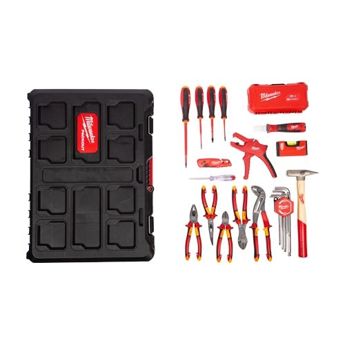Trusa profesională Milwaukee Packout VDE 62 piese pentru electricieni este alegerea ideală pentru lucrări de instalații electrice, mentenanță și intervenții profesionale. Concepută pentru organizare excelentă și transport sigur, această trusă VDE pentru electricieni reunește scule premium într-un sistem robust PACKOUT Milwaukee, ușor de transportat și pregătit pentru utilizare zilnică.