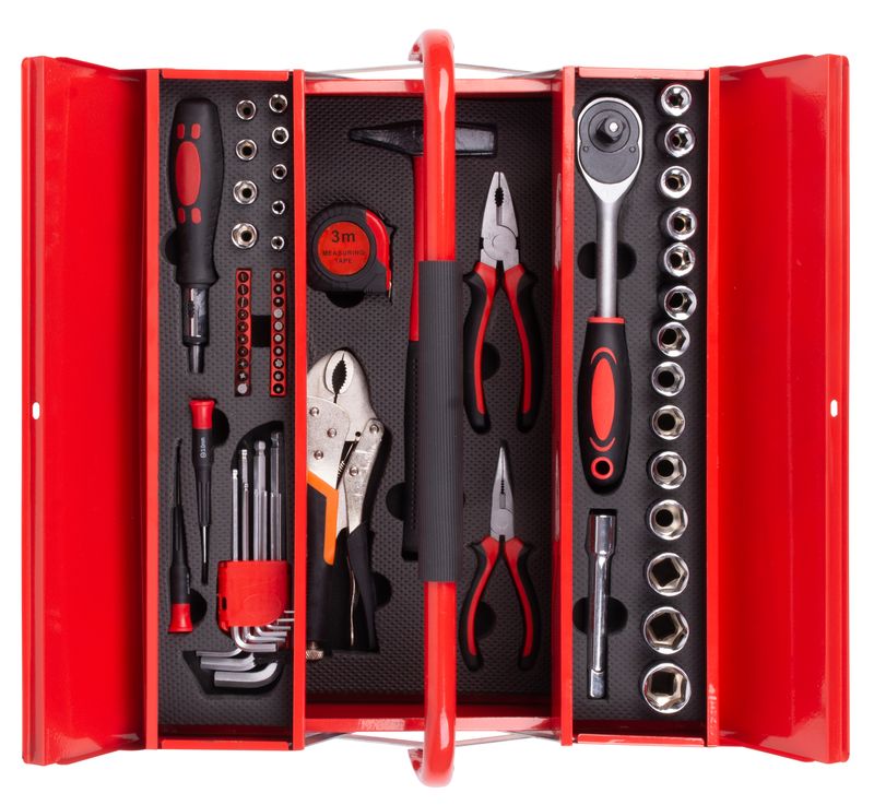 Trusa de scule Strend Pro S264 cu 64 piese este un ajutor de încredere pentru atelier, garaj sau proiecte DIY. Vine într-un cufăr metalic tip valiză, cu compartimente dedicate, ca să ai uneltele mereu la îndemână și bine organizate. Ideală pentru lucrări de întreținere, montaj și reparații auto sau casnice.
