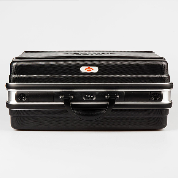 - Geanta din material ABS-Material, negru cu cadru perimetral din aluminiu cu inele pentru aplicarea curelei de agatare