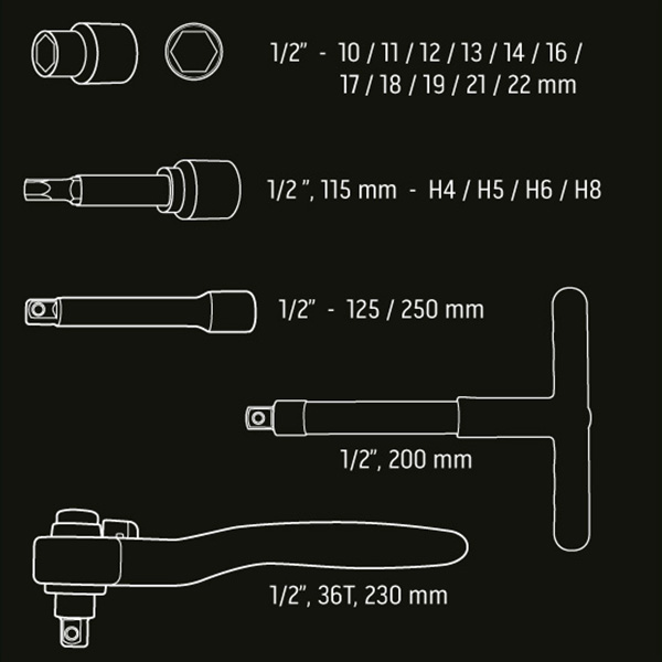 Descriere Trusa tubulare 1/2" vde 1000v neo