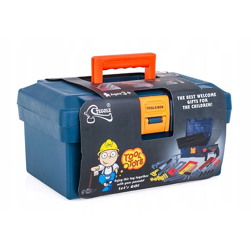 Acest set de constructii pentru copii este plasat intr-o cutie de depozitare cu maner si asigurata cu o inchizatoare. Intreaga trusa contine 32 de piese, printre care burghiu, surubelnite, ciocan, fierastrau de mana, spatula, chei, subler, etc. Trusa si piesele de construit ii ajuta pe copii sa isi dezvolte abilitatile manuale si coordonarea motrica, imaginatia si invatarea prin joaca. Este un set complex cu multiple accesorii care au un aspect realist, fiind recomandat copiilor incepand cu varsta de 3 ani.