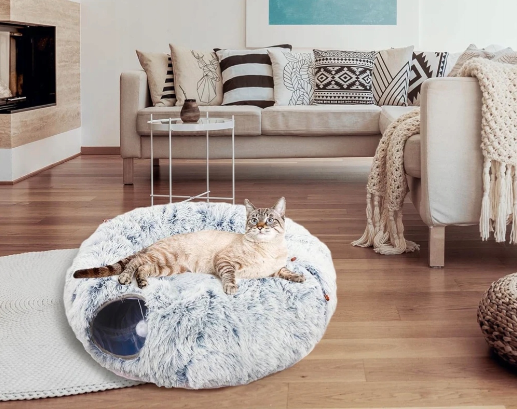 Tunel de joaca pentru pisici din plus, transformabil in pat rotund, 85 cm Household NewTrend