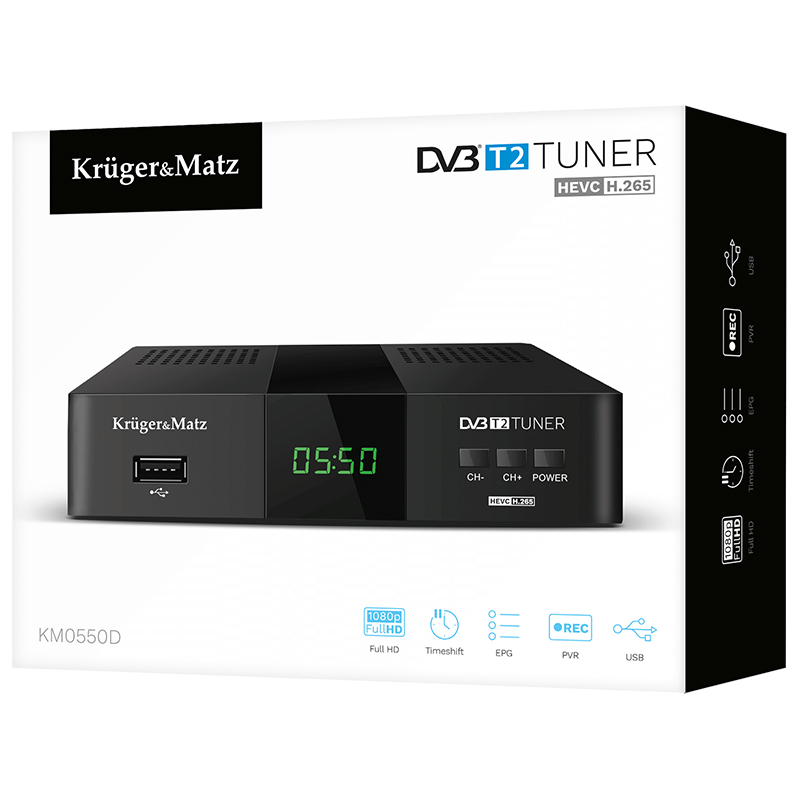Specificatii TUNER DVB-T2 H.265 HEVC KRUGER&MATZ