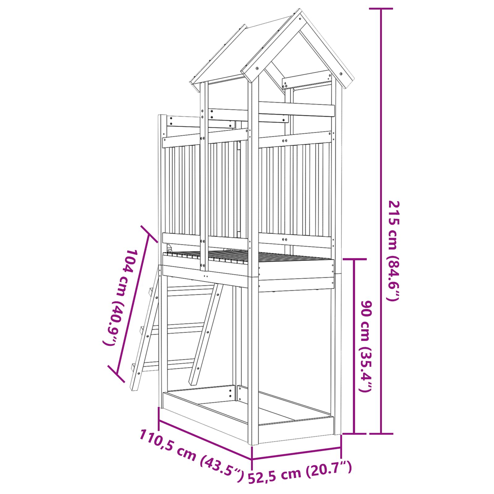 Turn de joacă Maro 52,5 x 110,5 x 215 cm Lemn de pin masiv GartenMobel Dekor
