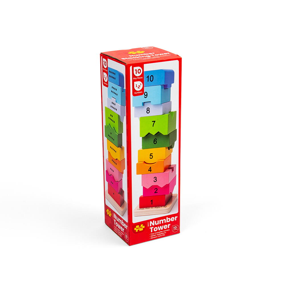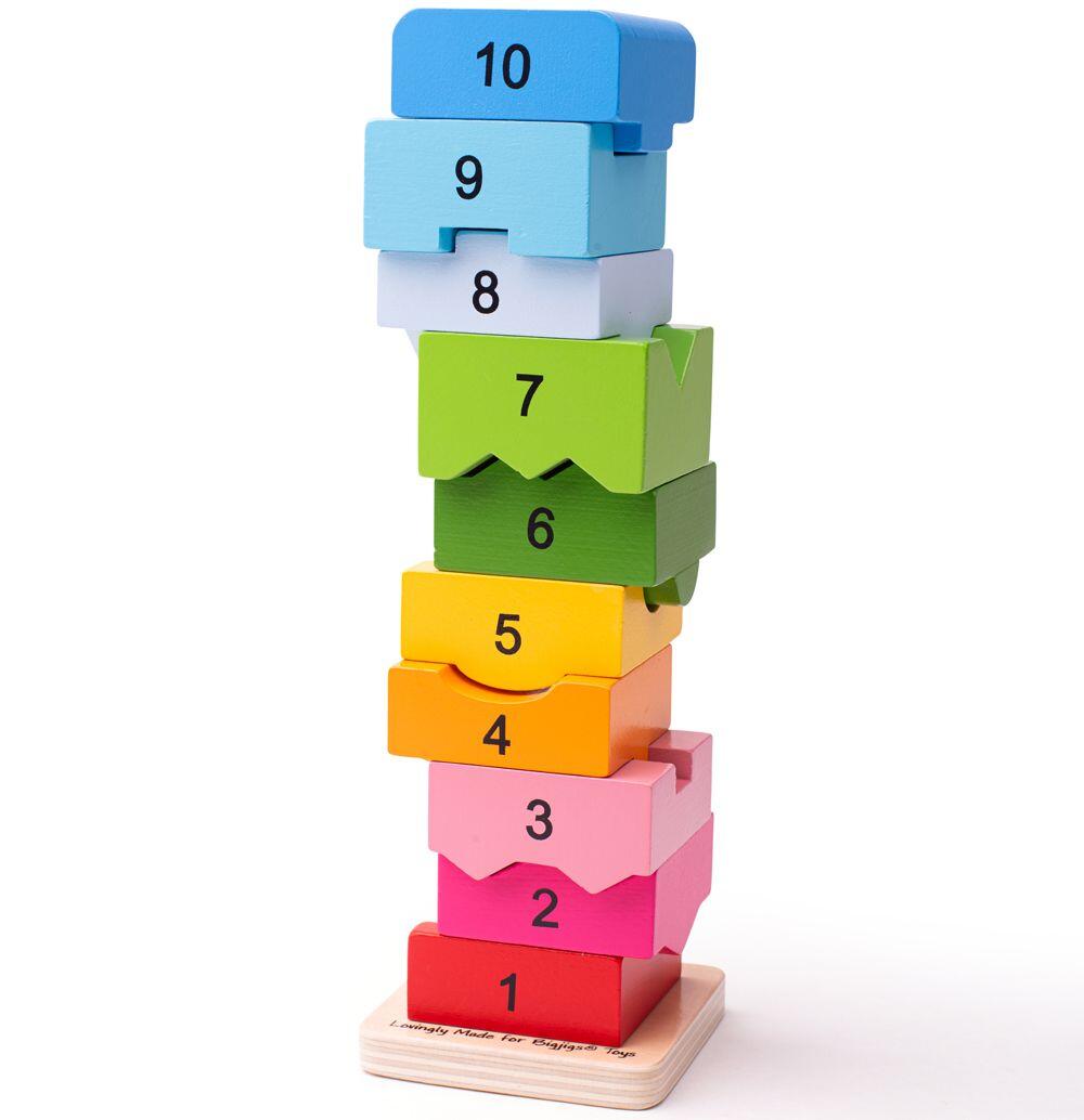 Turnulet educativ din lemn cu numere si culori, 11 piese, 10 luni+