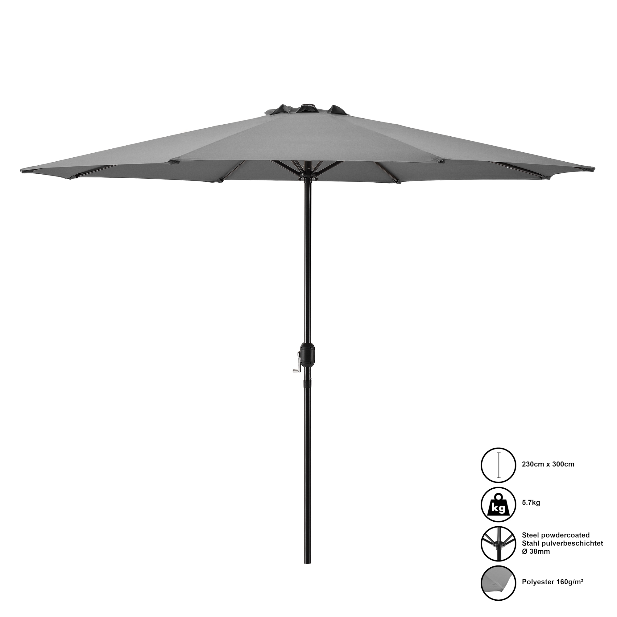 Umbrelă de grădină Budapest 300 cm gri, cu manivelă și protecție UV