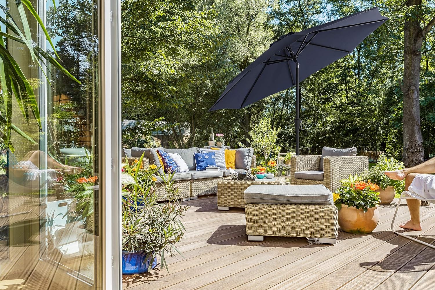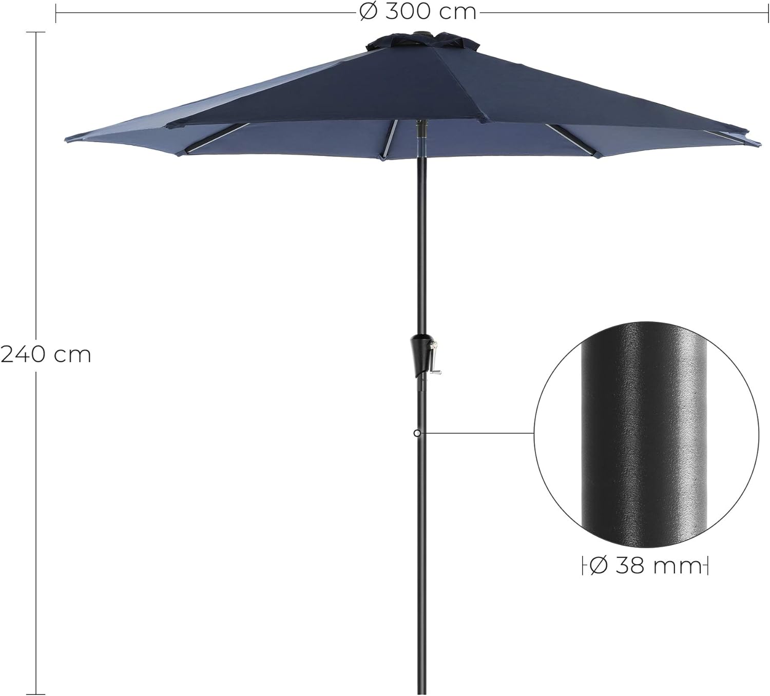 Umbrelă de grădină Songmics 300 cm cu manivelă și înclinare, albastru închis