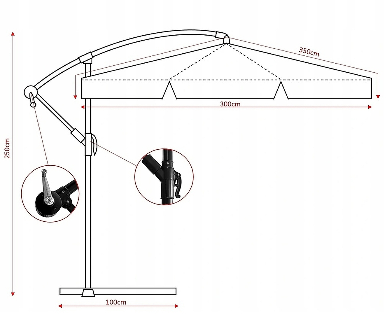 - Design tip banana cu braț lateral pentru spațiu liber sub umbrelă