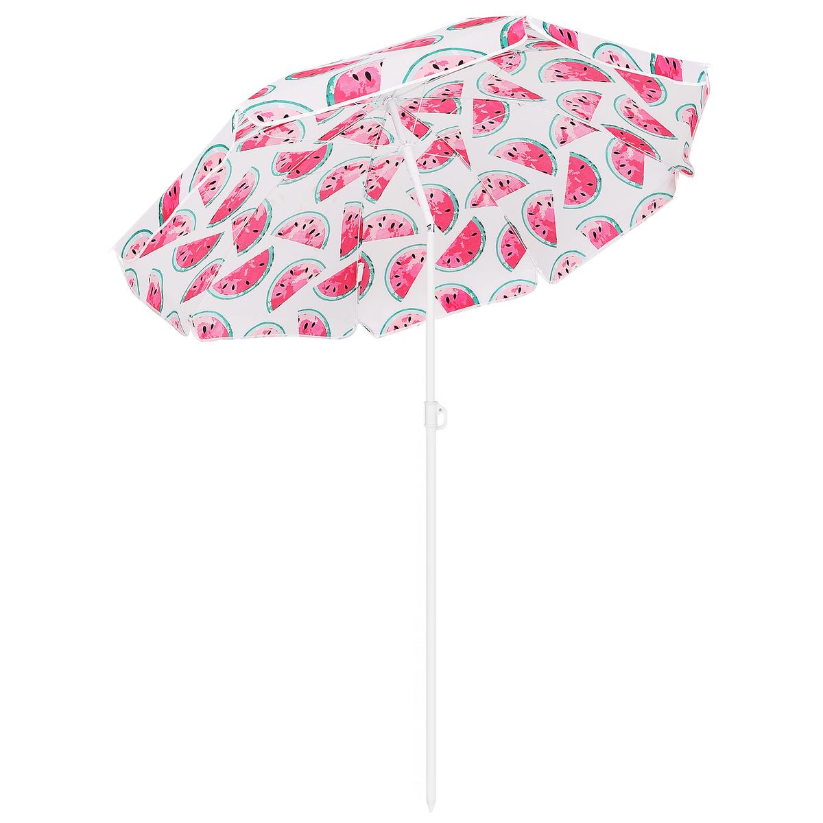 Specificatii tehnice Diametru exterior: 155-160 cm (masurat pe material) Diametru util interior: aproximativ 140 cm Reglare inaltime: Da, intre 115 si 170 cm Numar spite: 8 buc, lungime 76 cm Diametru spite: 2,5 mm Material cupola: Poliester 170T Material tija: Otel 19/22 mm Ventilatie superioara: Nu Protectie solara reflectorizanta: Nu Reglare unghi inclinare: Da Sistem fixare sol: Varf conic pentru nisip Culoare: Alb, rosu, verde Destinatie: Plaja, balcon, gradina, terasa Scurta descriere Umbrela de plaja si balcon cu design inspirat din pepene este perfecta pentru zilele toride petrecute la mare sau in gradina. Structura rezistenta din otel si cupola generoasa din poliester asigura umbra placuta si protectie eficienta. Se monteaza usor si permite reglaje flexibile atat pe inaltime, cat si in unghi, pentru o utilizare adaptata oricarui spatiu. Caracteristici principale Diametru generos de pana la 160 cm Design modern si vesel cu tematica pepene Reglaj pe inaltime si inclinare Structura din otel durabila 8 spite rezistente, lungi de 76 cm Usor de fixat in nisip gratie varfului conic Material poliester rezistent 170T Ideal pentru balcon, terasa, plaja sau gradina