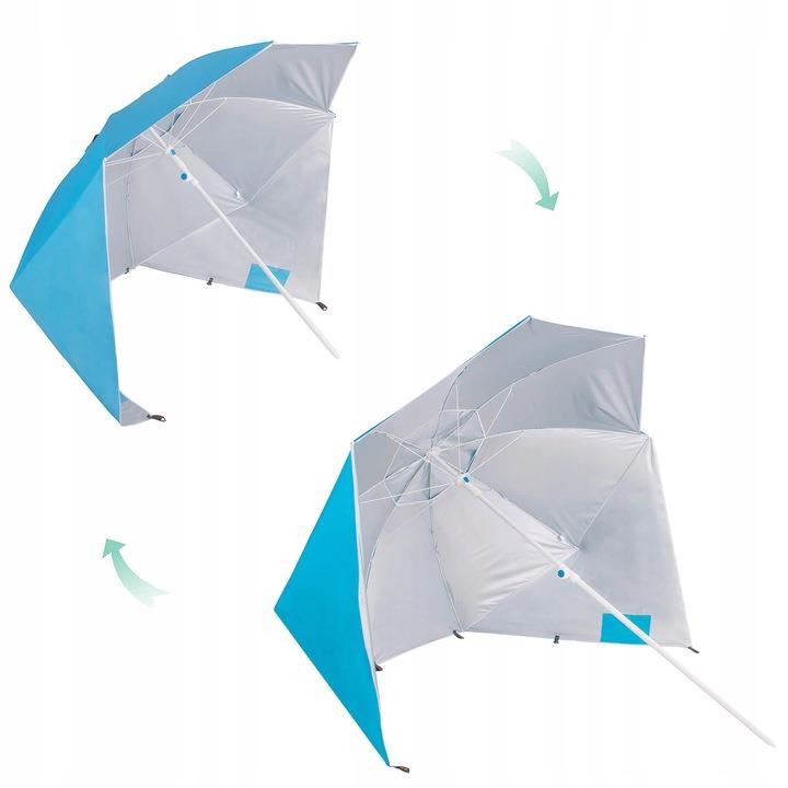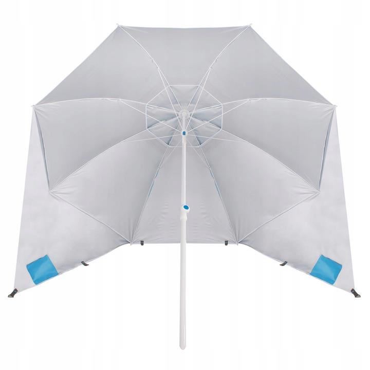 Umbrela de plaja XXL tip cort cu 2 pereti laterali, reglabila, albastra